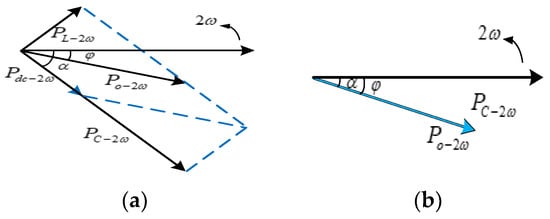 Phasor diagram of double-frequency (2ω) power flows with the CMS (a) and RVCMS (b).