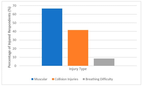 In total, 48% of the drivers reported injury and illness due to their occupation. These ranged from injury from collisions to breathing troubles believed to be linked to the pollution they are breathing in on a daily basis. Of the 48% of drivers reporting injury and illness, two-thirds complained of muscle soreness and aches and pains, typically in the legs and lower back. Further, 42% complained of injuries that occurred from collisions with other vehicles; one driver complained of chest pain and breathing problems (see Figure 2).