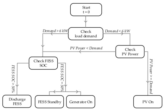 Power transfer flow chart of FESS, PV, and DGen.