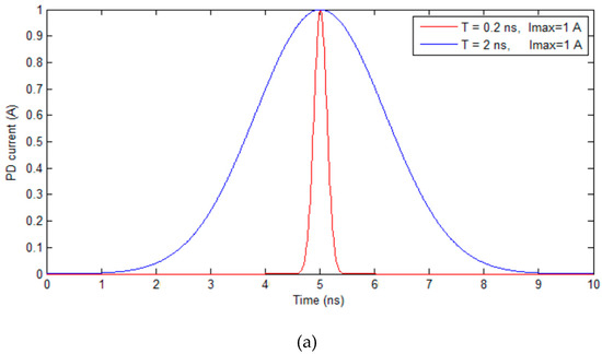 where Imax = magnitude of the peak current and σ = pulse width measured at half of the maximum value. The PD current is expressed in the frequency domain as: