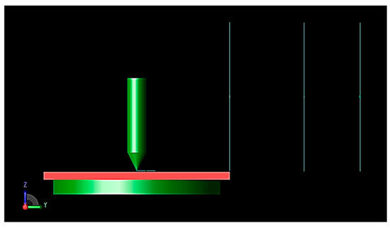 Figure 6 shows the non-uniform point-plane configuration model used for simulating the surface discharge. A similar configuration consisting of two circular electrode plates is used to create a uniform field condition. The high voltage and ground electrodes are made of stainless steel. The insulator sample, a 90 mm × 90 mm square having variable thickness, is placed symmetrically between them, i.e., with its axis of symmetry coincident with the electrode’s vertical axis. The vertical lines on the positive y-axis direction show the UHF sensor placed at different distances, with variable length and height. The reference simulation values are taken as: (i) pulse width, 0.4 ns, (ii) pulse amplitude, 1 A, (iii) PD source length, 10 mm and (iv) sensor length, 80 mm.