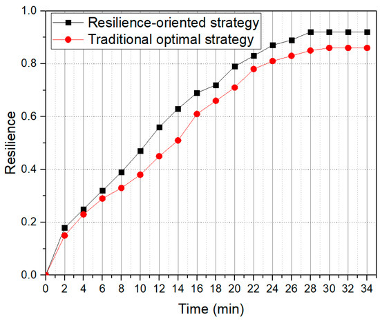 While, in order to illustrate the system resilience index, recovery time, and recovery velocity, this paper considers the 35 minutes period and chooses 2-minute as the step to study it. The experimental result of optimal model, compared to the traditional optimal operation strategy, is demonstrated in Figure 7.