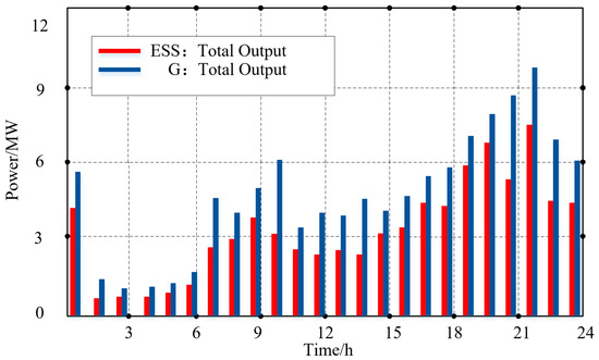 The optimal operation strategy is presented in Figure 9, since the peak hours are at night, the biggest output power of the dispatchable DERs appears at 22 h, the total output of traditional generation unit in this 24 h-period is 139.06 MW.