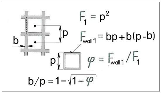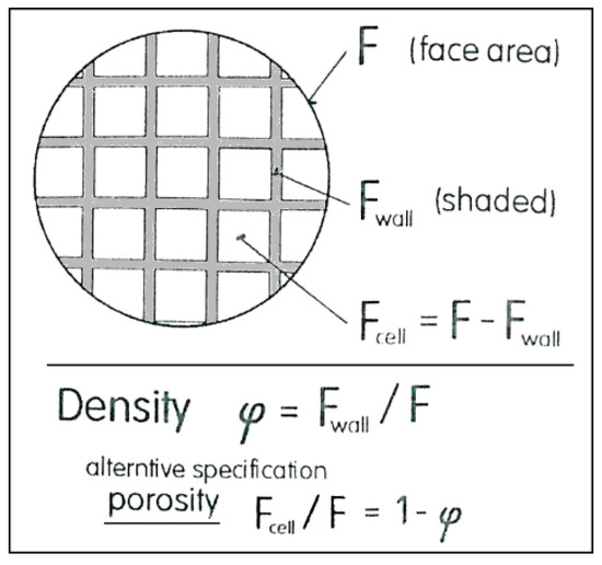 The ratio of the open area Fcell of the cells in the sample to the round face total area F = π d2/4 (Figure 3 and Figure 4). The density values for the samples A and B were φ = 0. 52 and φ = 0.38, respectively.
