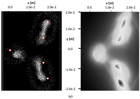 Comparison of spray simulations (left) and experimental imaging (right) at 0.5 ms from SOI: front (a), side (b) and bottom view at 30 mm from the injector tip (c). Conditions as in Table 4.