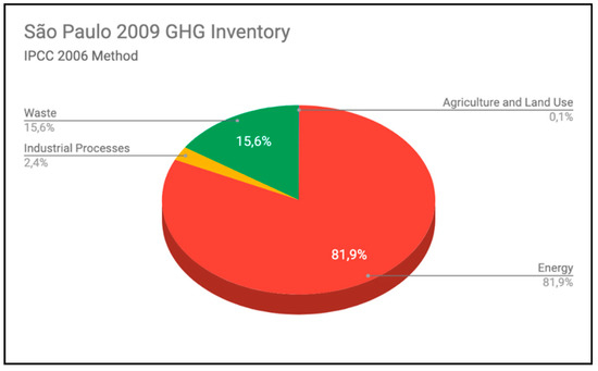 - Instituto Ekos Brasil & Geolock Consultoria e Engenharia Ambiental. Inventário de Emissões e Remoções Antrópicas de Gases de Efeito Estufa do Município de São Paulo de 2003 a 2009 com Atualização para 2010 e 2011 nos Setores Energia e Resíduos; ANTP: São Paulo, Brazil, 2013. [Google Scholar]