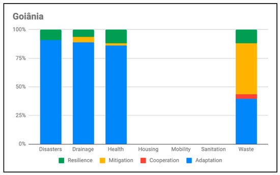 In four of the five local climate plans, except Goiania’s, Mitigation was the most referenced climate axis, what is a consequence of the investigated cities’ concern with the consumption of fossil fuels and sustainable waste management. In the case of São Paulo’s, more than 75% of the references relate to Mitigation.