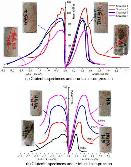 3.1. Experimental Tests on Glutenite under Uniaxial and Triaxial Compression