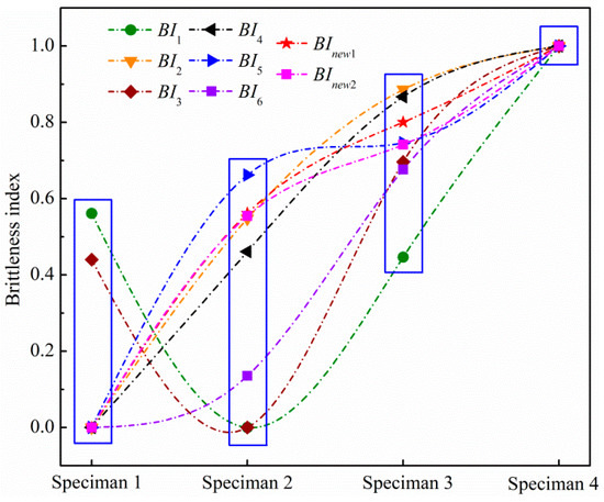 3.3. Comparison of Brittleness Indexes