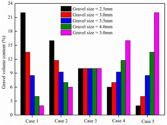 Numerical cases of five models with different gravel size gradations.