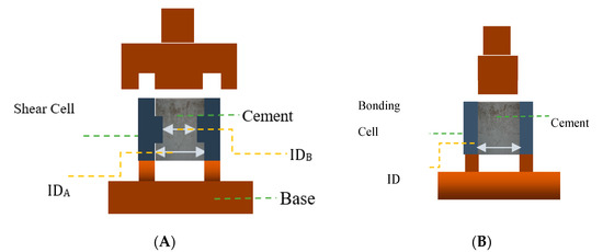 Shear strength (A) and interfacial bonding shear strength (B) test cells used in the present study.