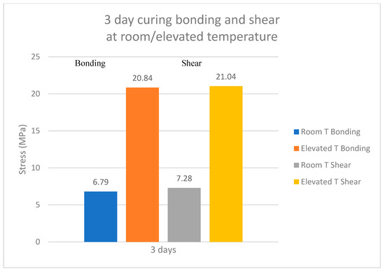 Comparison between 3-day curing room temperature and elevated temperature (ET) bonding s strength.