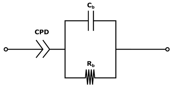 Since no charge can pass the electrode/membrane interface, the interface impedance is merely capacitive []. Electrodes with a perfectly flat surface purely have a capacitive behaviour, although small irregularities in most electrodes lead to the use of a constant phase element (CPE) instead of a capacitor when analysing the impedance. The total impedance in Equation (17) can be simplified to: