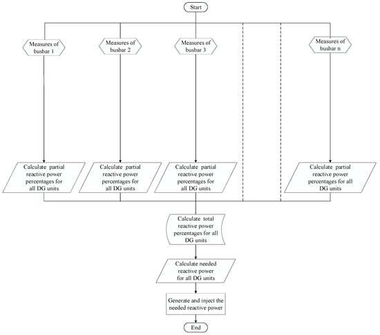 The same was done for other busbars and DG units. Therefore, we obtain the matrix of reactive power percentages for all DG units as shown in the following Equations: