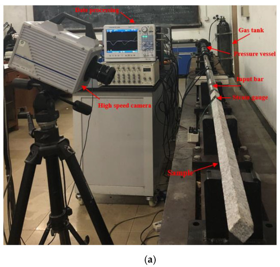 The Hopkinson bar is commonly used for testing rock dynamic properties [1]. Based on the Hopkinson bar, many scholars have studied the failure characteristics of rock and rock-like materials [2,3,4]. Regarding rock specimens with a cavity, Li et al. [5] conducted an experimental study on the dynamic failure characteristics of a rock specimen containing an elliptic hole based on the Split-Hopkinson pressure bar (SHPB). In their experiment, the dynamic compressive strength, failure mode, and crack propagation characteristics of a rock specimen with a hole under different dynamic loads were analyzed. Tao et al. [6,7] carried out a static and dynamic combination test of the prefabricated circular hole specimen by using an SHPB device and compared the results with theoretical calculations. They concluded that the dynamic stress concentration area was the first region damaged in the specimen.