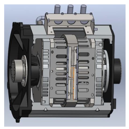 - Rasekh, A.; Sergeant, P.; Vierendeels, J. Fully predictive heat transfer coefficient modeling of an axial flux permanent magnet synchronous machine with geometrical parameters of the magnets. Appl. Thermal Eng. 2017, 110, 1343–1357. [Google Scholar] [CrossRef]