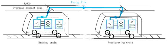 The train regulation directly affects the energy consumption of metro networks. Considering a metro network with several trains driving in different strategies, traction trains consume energy while braking trains recover energy at the same time. If trains are regulated in a proper way, a large amount of energy can be saved. Figure 1 shows the energy flow between trains.