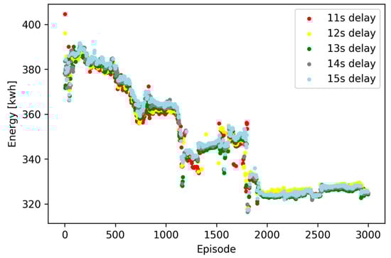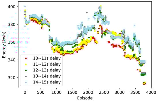 Table 3 shows that, under the larger delay, about 2% energy can be saved, but under the smaller delay, the agent can hardly save energy. On the basis of discretely sampling random disturbances, there are not enough samples supporting the learning of the agent, leading to an unremarkable percentage of energy saving. The experiment reflects that discretely sampling random disturbances cannot train out optimal DDPG networks. Experiment 3 gives a proper solution to promote the learning efficiency of the agent.