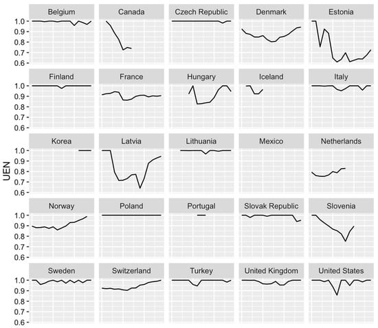 Evolution of UEN for 25 OECD countries.