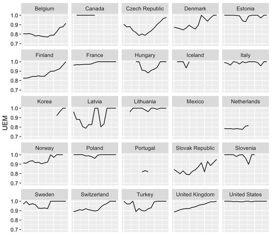 Evolution of UEM for 25 OECD countries.