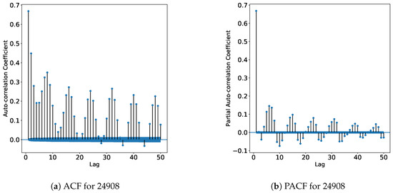 Figure 6. Auto-Correlation Function (ACF) and partial ACF (PACF) for 24908.