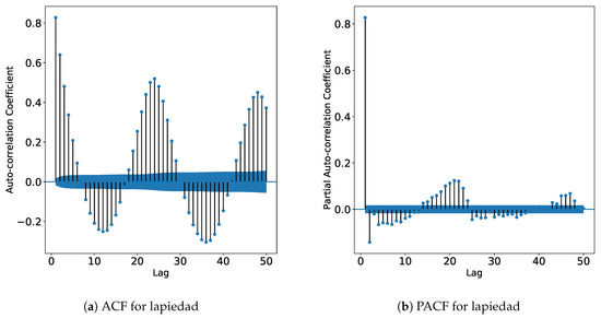 The non-stationary ARIMA models are described as A R I M A ( p , d , q ) , where p, d, and q are non-negative integer parameters; p is the order of the auto-regressive model, d is the differentiation degree, and q is the order of the moving average model [52].