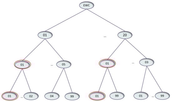 In this case, the algorithm again retrieves only the records of sites that “have” resources. As the search method is set to “rank” not only resources with EWCs exactly matching the query EWC are taken into account. From the existing resources, tagged as “have”, there is none with exactly the same EWC. However there exist different types of packaging, like the cardboard packaging and wooden packaging, both offered by HotelNew. For instance, the cardboard packaging has EWC equal to 15 01 01 and the wooden packaging 15 01 03 [48]. As calculated using Equation (5), both of these EWCs have a similarity degree of approximately 0.45, while both linguistic descriptions match the query keyword at a 0.5 degree of similarity. Finally, the sites’ distance between the query and the provider sites is calculated. Both candidates will be presented to the user, with the nearer one being presented first.