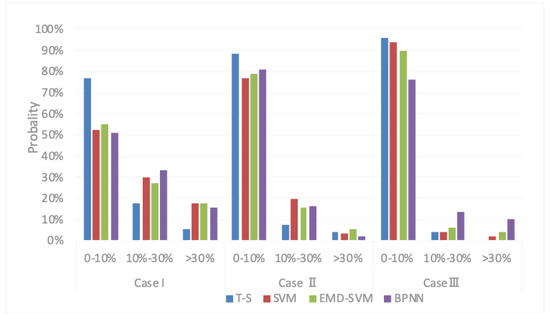 From the above analysis, one may conclude that the three competing methods rely more on the quality of sample data, especially BPNN, for which the forecasting performance is not the same. SVM and EMD-SVM are also very sensitive to input data. Therefore, we can conclude that, in comparison with the three other methods, the main advantage for the proposed method is that the T–S fuzzy model can solve a multi-classification problem; the proposed approach also enjoys better linearization ability and is robust to measurements errors.