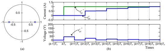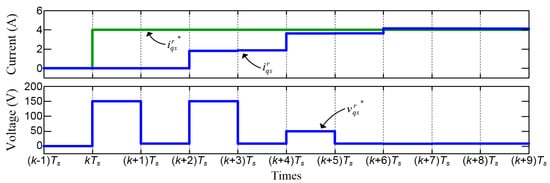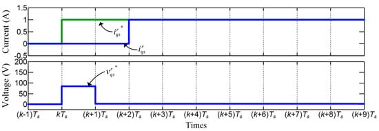 From Equation (2), the q-axis current sampled at the kth and (k − 1)th control instants can be expressed as follows: