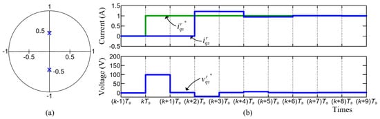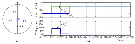 According to Equation (10) and the relation h(z) = 1, the deadbeat controller Cq(z) can be derived using the estimated electrical parameters. The deadbeat controller Cq(z) is expressed as follows: