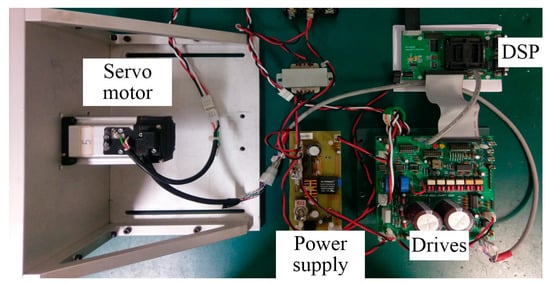 A 400-W servo motor was used for experimental verifications. The parameters of the motor are provided in Table A1. Figure 17 illustrates the experimental system. The proposed online current loop tuning scheme is implemented using a Texas Instruments TMS320F28335 DSP. The detailed configuration of the drive is detailed in Table A2. In this study, Vmax was set to 139 V to account for the losses caused by the dead time. The motor position and speed were measured using an encoder with a resolution of 2500 pulse/rev.