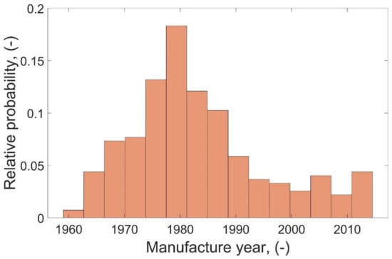 In this research, a characteristic population of mid-power HV/MV transformers is analyzed. The fleet consists of over 1500 units. The age structure of the population (Figure 1) shows that approx. 60% of the units are older than 30 years. Typical rated voltage levels are 115/16.5 kV and rated power span is from 10 to 30 MVA. Depending on the rated power, typical load losses span between approx. 60 and 130 kW, while no-load losses span between approx. 10 and 25 kW. What is the most significant, typical relative load of the units during normal exploitation conditions usually is not higher than 40%. It is mostly because a common substation configuration is a parallel setup of the transformers and each unit is designed to temporally take the load from both transformers. All units are filled with mineral oil and generally equipped with oil-natural air-natural (ON-AN) or oil-natural air-forced (ON-AF) cooling systems. Three representative units were selected from the analyzed fleet for further investigation: 25 MVA 2-winding unit with one of the highest loads in the population, 115/16.5 kV, 108.7 kW of load losses and 10.8 kW of no-load losses and ON-AN cooling system (Tr1); 25 MVA 2-winding unit with an average load in the population, 115/16.5 kV, 126.4 kW of load losses and 16.7 kW of no-load losses and ON-AN cooling system (Tr2); 25 MVA 3-winding unit which represents an average load in population, 115/16.5/6.6 kV, 128.7 kW of load losses and 21.1 kW of no-load losses and ON-AF cooling system, working in an indoor substation (Tr3).