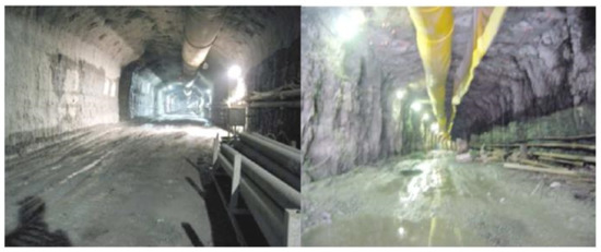 Figure 3 shows images comparing a heading driven with a roadheader and a heading excavated using explosives. In the case of mechanical mining, it is evident that the heading has a clearly more regular envelope and the surfaces of its sidewalls, floor, and roof are much more even.