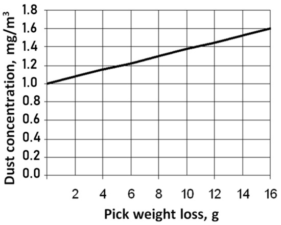 The impact of the structure of the excavated rock material and the presence of abrasive materials, such as sphaerosiderites and siliceous compounds, on the tool’s load and working life, as well as on mining efficiency, have been described in literature [16,17,18,19,20]. The tests were carried out during borehole drilling—first in a rock medium with naturally weakened surfaces and then in rock media with varying contents of SiO2.