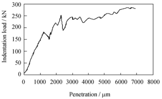 Indentation load vs. disc penetration for diorite [35].