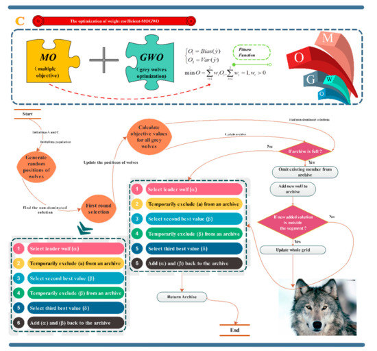 To get more accurate forecasts, we adopt the GWO (grey wolf optimizer) algorithm which is modified to deal with the multi-objective problems to optimize the main forecasting model LSTM. By using the multi-objective optimization theory, we can achieve both an accurate and a stable forecasting quality.