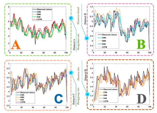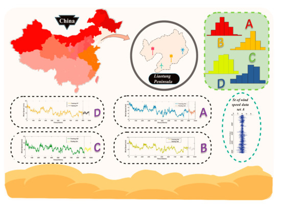 With the rapid development of and increasing research on computer science, the performance of complex calculations in less time has become possible. Consequently, in the past few years, a large number of statistical learning models have been recorded, which eventually formed a mature theoretical system. The renowned ANN (artificial neurol network) is widely utilized for wind speed forecasting fields, which have the ability to carry on the parallel processing and to deliver nonlinear maps. This mainly includes back propagation (BP) [18], the radial basis function (RBF) [19], the Elman neural network (ENN) [20], the wavelet neural network (WNN) [21,22], and others. In addition, during the past twenty years, the neural network field has experienced some innovations which have resulted in well-known deep learning (DL) models [23]. Particularly, the large computational cost has been the largest drawback of conventional neural network algorithms. However, greedy layer-wise pretraining is able to train the so-called deep belief network (DBN) more efficiently [24,25]. Following pertinent progresses, scientists are now able to create and train neural networks with not only one hidden layer, which, in turn, has increased generalization capabilities and allowed better outcomes. This field has also been renamed “in-depth learning” to assess the depth of progress made [26]. The success of DL models can be seen in computer science applications, such as image recognition [27], speech recognition [28], and machine translation [29]. Moreover, the benefits have also spread to energy-related fields, such as wind power forecasting, which especially refers to wind speed forecasting. In the same field, Wang et al. [30] proposed the convolutional neural networks (CNNs) to acquire precise probability prediction of wind power. However, there is still relatively less research about the DL-related models being applied in wind speed forecasting fields compared with the most active part of this technology. In Reference [31], a deep autoencoder (DAC) combined with extreme gradient boosting (XGB) was proposed to forecast the building cooling load; A deep neural network (DNN) was also applied to get the forecasting results; this method was more accurate than the other methods presented in the same paper. In Reference [32], the DL model was also shown to discern the islanding highly accurately. Therefore, regarding this point, we considered the application of these kinds of technologies in wind speed forecasting in an effort to get a higher accuracy. Furthermore, the authors of Reference [33] proposed a DL strategy applied to time series forecasting and demonstrated how it can be successfully used in electricity consumption forecasting, which correlates with the wind speed data to some extent. Except for ANNs, fuzzy logic methods [34] as well as support vector machine (SVM) [35]-related methods, such as least-squares support vector machines (LSSVMs) [36], Gaussian processes [37], and others, are also commonly applied in the forecasting of wind speed.
