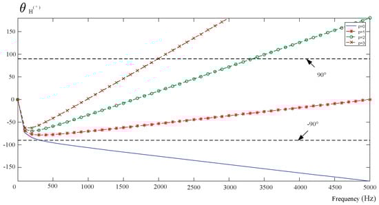 where is the phase angle of H(z), is the frequency, p is the order of the phase-lead compensation, and is the transfer function of the closed-loop control system. The control gain and the order of the phase-lead compensation are determined as shown below. In the z-domain analysis, the phase-lead compensation is commonly expressed as follows []: