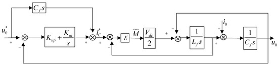 Figure 12. It shows the output voltage of the source side unit using traditional droop control. The steady-state bus voltage is 305.4 V before the load changes, while the system preset voltage is 311 V, and the deviation is about 5.6 V. Moreover, the voltage waveform shows a significant distortion at 0.2 s.