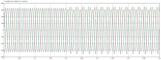 Figure 15 is the output voltage waveform of the source side unit under the traditional droop control. It can be seen that the amplitude of the output three-phase voltage waveform is not equal at 0.2 s.