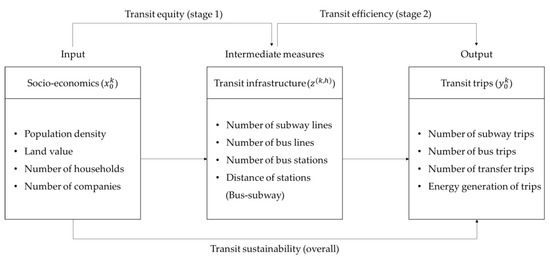 - Hahn, J.S.; Kim, D.K.; Kim, H.C.; Lee, C. Efficiency analysis on bus companies in Seoul city using a network DEA model. KSCE J. Civ. Eng. 2013, 17, 1480–1488. [Google Scholar] [CrossRef]