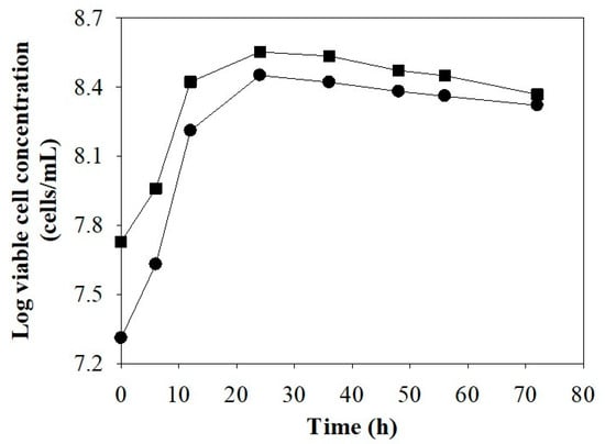 Ethanol fermentation under optimal conditions (Section 2.4) was done as previously described (Section 2.5). The agitation rate, aeration rate, and aeration time were 200 rpm, 2.5 vvm, and 4 h, respectively []. Samples were taken at regular time intervals for chemical analyses.