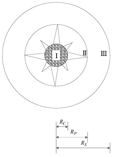 The stress waves are further decreased when propagating further away from the borehole. The decreased dynamic stress cannot cause fracture of the rock and can only induce elastic deformation (III zone in Figure 5). The radius of the elastic deformation zone can be calculated by