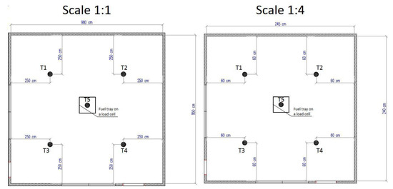 - Quintiere, J.G.; Carey, A.C.; Reeves, L.; Mccarthy, L.K. 2008-DN-BX-K178: Scale Modeling in Fire Reconstruction; Natopnal Criminal Justice Reference Service: Rockville, MD, USA, 2017. [Google Scholar]