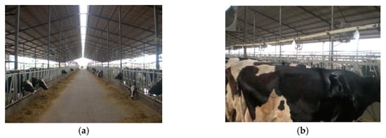 With the increase demand of dairy milk, healthy and efficient farming of cows is getting more and more attention from both the producers and consumers. High temperature and humid climate in summer is the main cause of heat stress in dairy cows, which may result in a decrease in feed intake, increase of incidence rate, and consequently reduction of milk yield. Heat stress in summer significantly affects the production efficiency of dairy cows [1,2], presenting one of the biggest environmental challenges for the dairy industry worldwide. Thus, cooling dairy cows is therefore essential during hot summer in any confined area. Among a variety of methods, the combination of water spraying in the form of small droplets and ventilation can significantly reduce the body temperature and effectively alleviate heat stress of the cows [3,4,5,6,7].