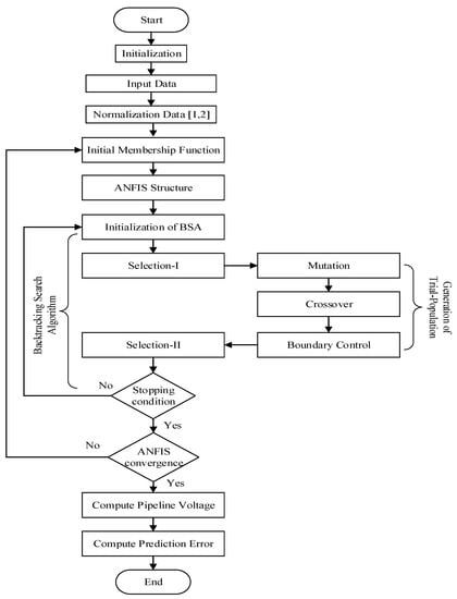Procedure of ANFIS-BSA for induced pipeline voltage prediction.