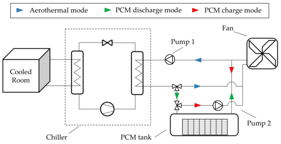 Schematic diagram of the chiller-phase change materials (PCM) system.