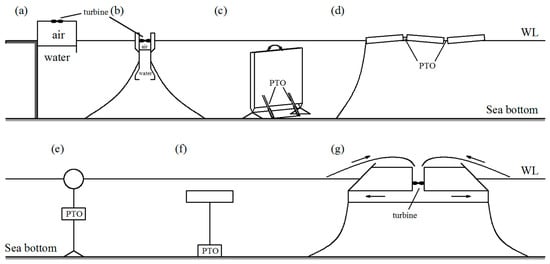 Based on the working principles of the WEC, from the primary conversion stage to the secondary conversion stage, the general categories are classified as shown in Figure 5 [72,73,74,75]: