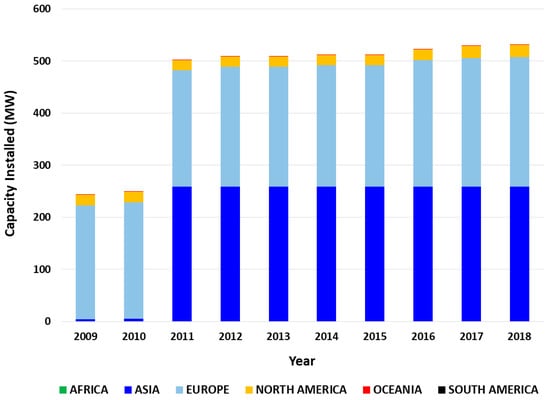 - Ocean Energy System (OES). Offshore Installations Worldwide. Available online: https://www.ocean-energy-systems.org/ocean-energy-in-the-world/gis-map/ (accessed on 18 April 2019).