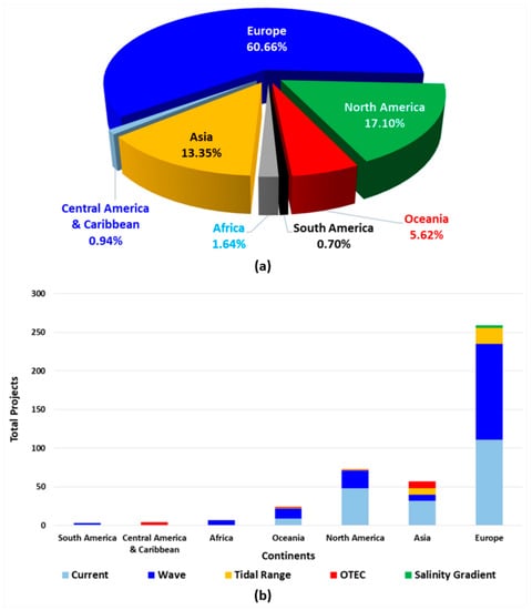 Tidal ranges can be forecasted accurately. The world’s largest tidal ranges occur in the Bay of Fundy, Canada (17 m), the Severn River Estuary, the United Kingdom (15 m), and the Bay of Monte Saint Michel, France (13.5 m) [52]. In addition, Argentina, Australia, China, India, Russia, and South Korea also have large amounts of tidal power.